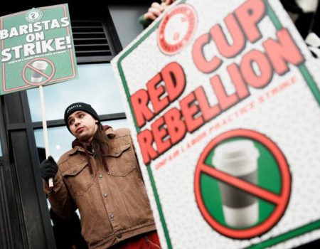More than 1,000 unionized Starbucks workers went on strike at 65 U.S....